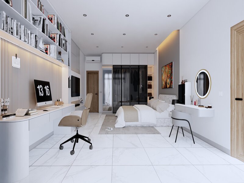 - Tủ không cửa (Walk-in closet): Dành cho không gian phòng thay đồ riêng biệt.