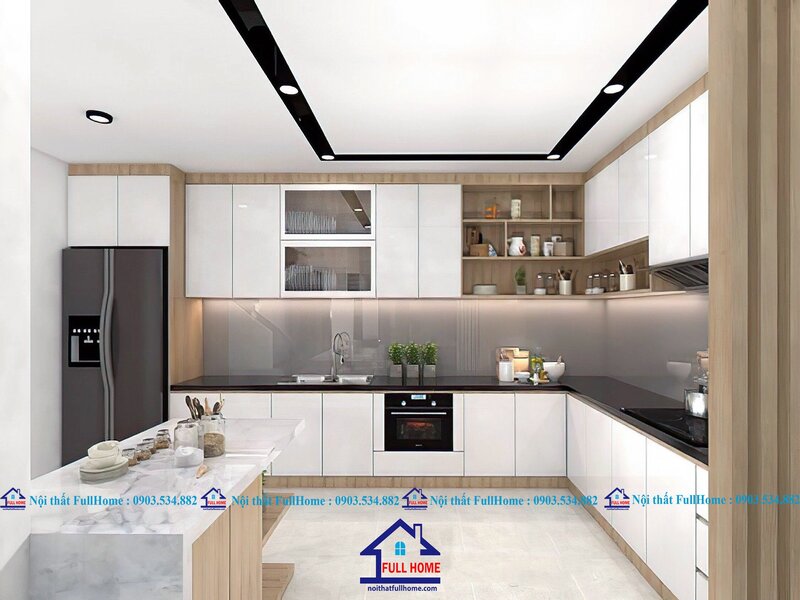 - Tam giác công năng: Bố trí hợp lý giữa 3 vị trí: Bếp nấu - Bồn rửa - Tủ lạnh để tối ưu quãng đường di chuyển khi nấu nướng.